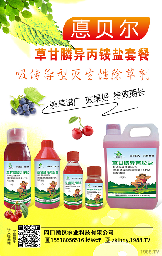 注意:草甘膦為滅生性除草劑,施藥時(shí)切忌污染作物,以免造成藥害。與土壤接觸立即鈍化失去活性僅適于做莖葉處理。水中的泥沙能吸附藥劑,故不能用渾濁的河水或硬度較大的水配制藥液。