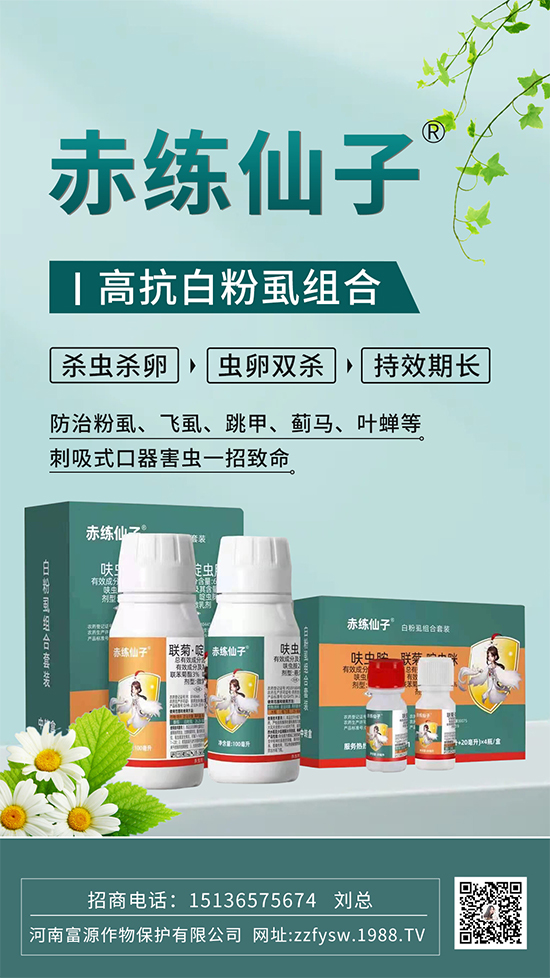 河南富源作物保護有限公司新品殺蟲劑【高抗白粉虱組合-赤練仙子】配方獨特,效果顯著,三元復配,內(nèi)含高滲透劑,滲透性強,針對白粉虱,,,2小時死蟲率98%以上,針對跳甲,介殼蟲,蚜蟲也有非常優(yōu)異的效果!