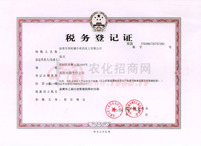 • 稅務(wù)登記證稅務(wù)登記證